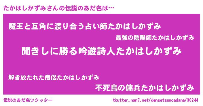 | ヒーロー風カッコイイあだ名 | 『仮面タカダー』『ネオタカハシカズミ』 |