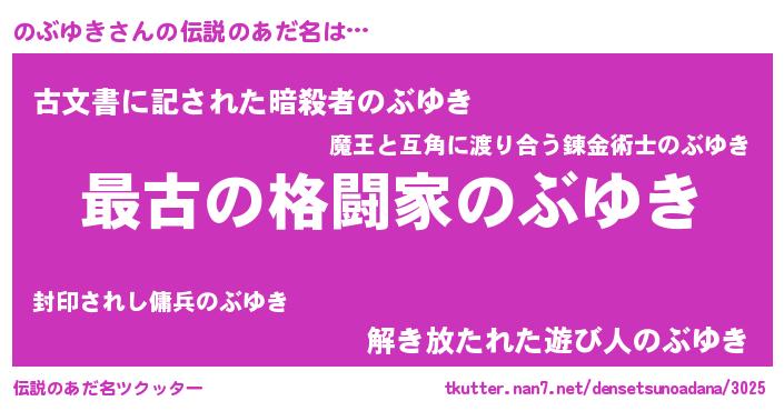 | ファンタジー風あだ名 | 『ゼノブトゥ』『エターナルノブユキー』 |