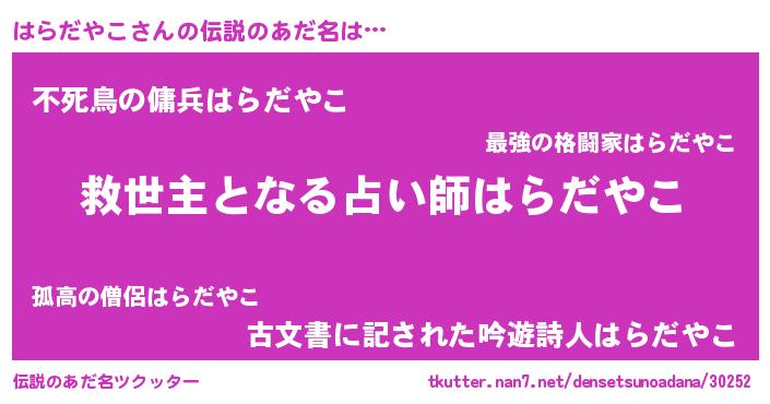 | ヒーロー風カッコイイあだ名 | 『慈愛の使者はらだやこ』 |
