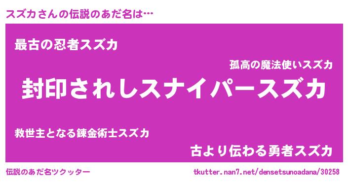 | ファンタジー風あだ名 | 『スズフェル』『エターナルスズカー』 |