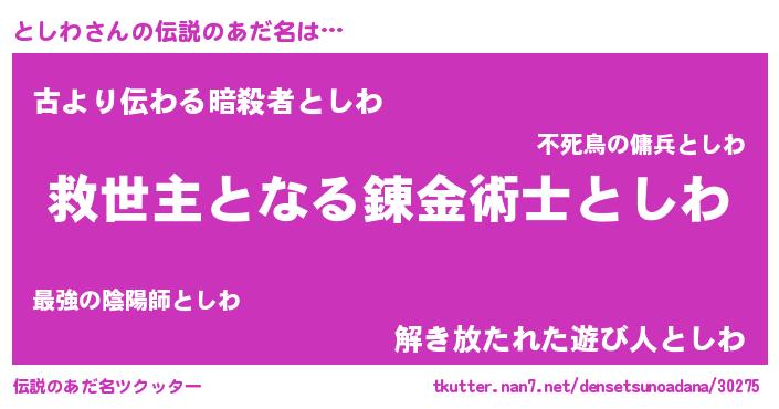 | ヒーロー風カッコイイあだ名 | 『究極戦士トシワ』『友情の使者としわ』 |