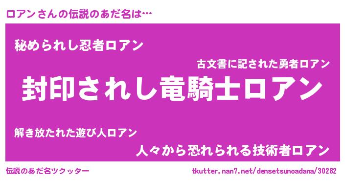 | ヒーロー風カッコイイあだ名 | 『スーパーロアン』『ウルトラロアンマン』 |