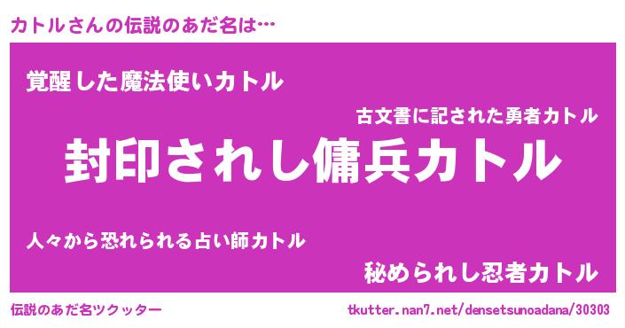 | ヒーロー風カッコイイあだ名 | 『仮面カトダー』『ウルトラ戦士カトル』 |