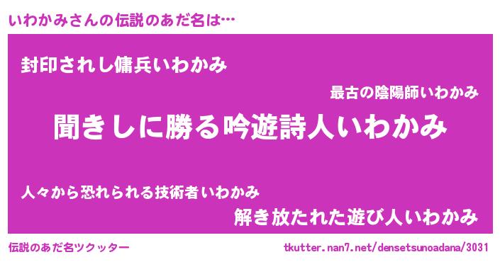| ヘコむあだ名 | 『いわかみ(小並感)』『いわにゅー』 |