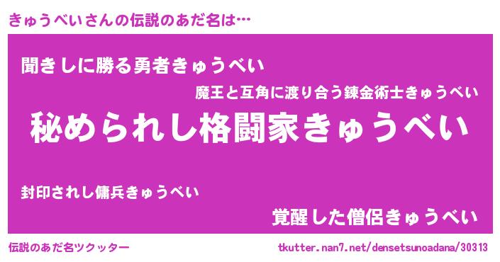 | 意味不明あだ名 | 『きゅうべいフォーエバー』 |