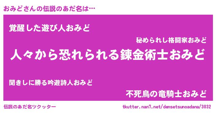 | ヒーロー風カッコイイあだ名 | 『正義の使者おみど』『幻影騎士オミ』 |