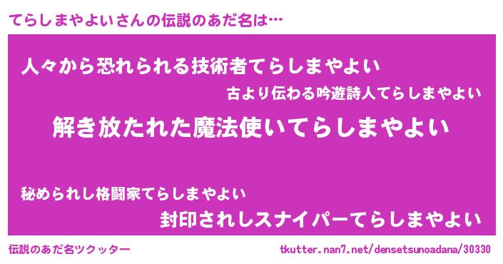 | 意味不明あだ名 | 『とにかく怪しいてらしまやよい』 |