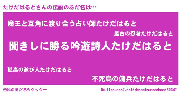 | 意味不明あだ名 | 『永久保存たけだはると』 |