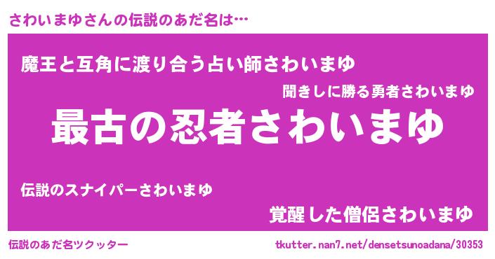 | ファンタジー風あだ名 | 『エターナルサワイマユー』『ゼサワトゥ』 |