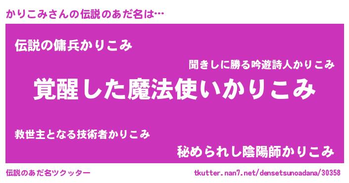 | 男性向けラノベタイトル風あだ名 | 『かりこみの嫁は女の子じゃないと思った?』 |
