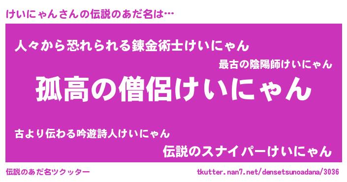 | 男性向けラノベタイトル風あだ名 | 『ケイニャンスレイヤー』 |