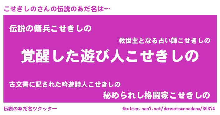 | ヒーロー風カッコイイあだ名 | 『天弓騎士コセ』『スーパーコセキシノ』 |