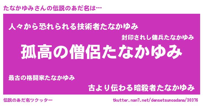 | ポケモン風あだ名 | 『タナセウス』『ヒタナカユミ』 |