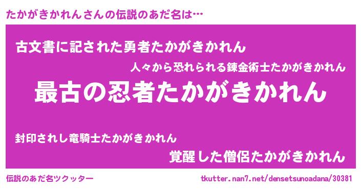 | ヒーロー風カッコイイあだ名 | 『ウルトラたかがきかれんマン』 |