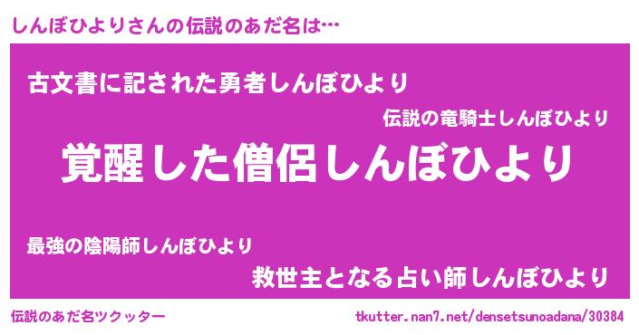 | ヒーロー風カッコイイあだ名 | 『究極戦士シンボヒヨリ』『幻影騎士シン』 |