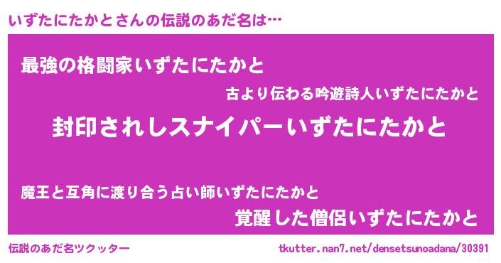 | 胡散臭い通販商品みたいなあだ名 | 『億万長者になれる霊験あらたかなお札…その名も「いずたにたかと」』 |
