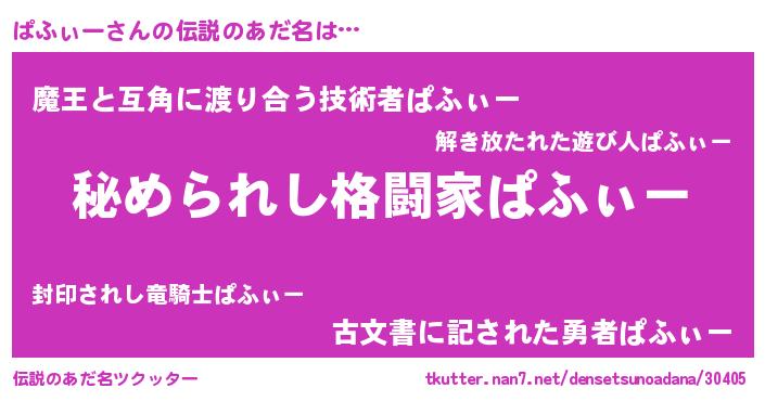 | ヒーロー風カッコイイあだ名 | 『仮面パフダー』『ウルトラぱふぃーマン』 |