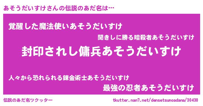 | ヒーロー風カッコイイあだ名 | 『スーパーアソウダイスケ』 |