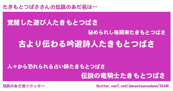 | ヘコむあだ名 | 『たきもとつばさ(小並感)』『たきぷりん』 |