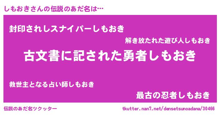 | ヘコむあだ名 | 『しもおき(苦笑)』『しももー』 |