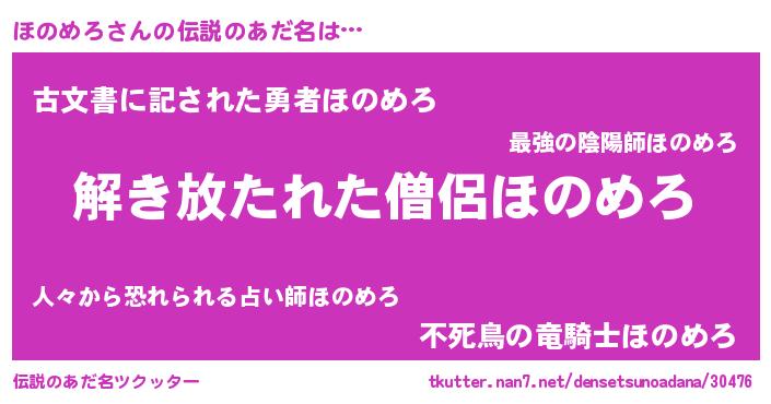 | 欧米人風あだ名 | 『ダレノガレほのめろ』 |
