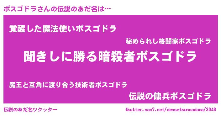 | ヘコむあだ名 | 『ボスゴドラ(爆)』『ボスを』 |