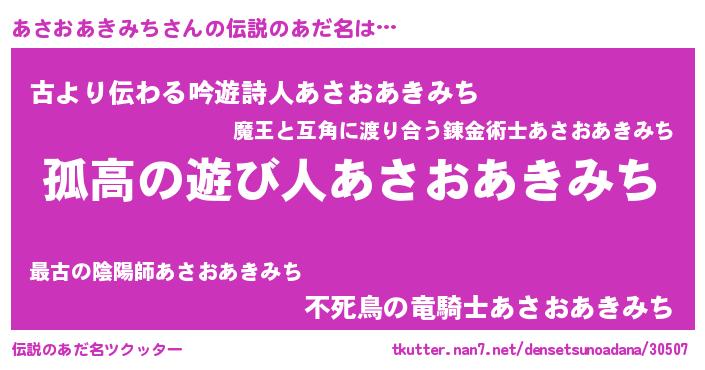 | 女子向けラノベタイトル風あだ名 | 『あさおあきみちは平凡を望む』 |