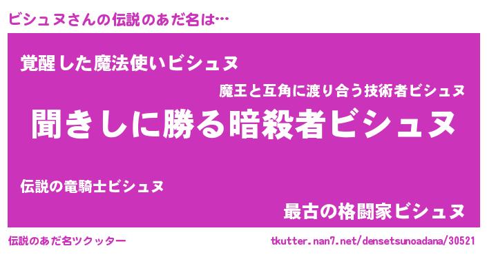 | 意味不明あだ名 | 『自称ビシュヌ』『永久保存ビシュヌ』 |
