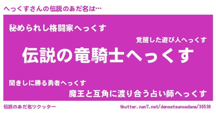 | 男性向けラノベタイトル風あだ名 | 『緋弾のヘックス』『へっくすの憂鬱』 |