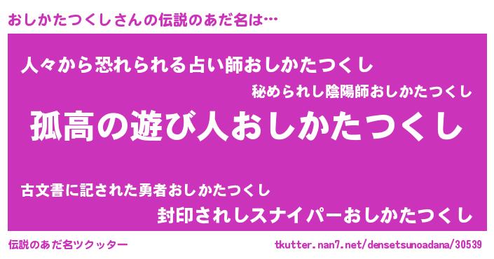 | 意味不明あだ名 | 『とにかく怪しいおしかたつくし』 |
