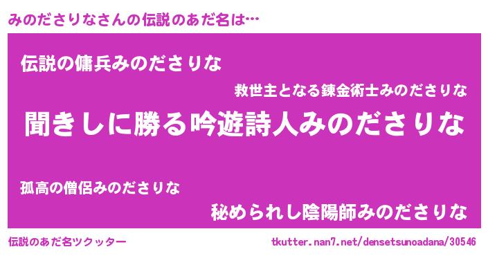 | 男性向けラノベタイトル風あだ名 | 『みのださりなという概念が存在しない退屈な世界 』 |