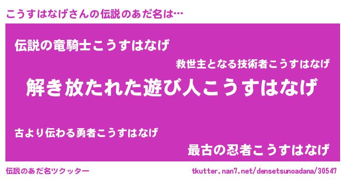 | 意味不明あだ名 | 『とにかく怪しいこうすはなげ』 |