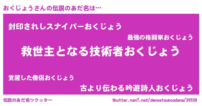 | 男性向けラノベタイトル風あだ名 | 『おくじょうに滅ぼされるだけの簡単なお仕事です』 |