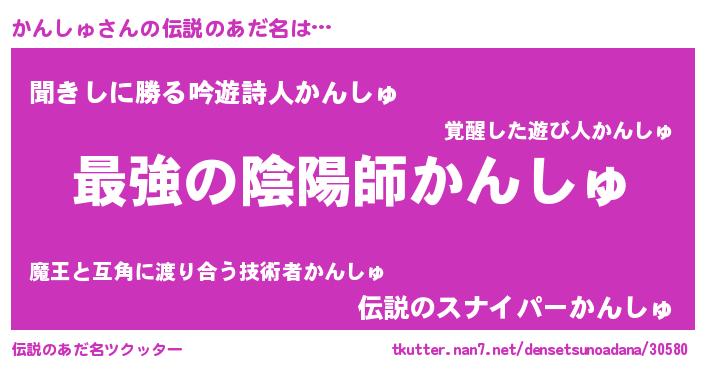 | ファンタジー風あだ名 | 『エターナルカンシュー』『ゼカントゥ』 |
