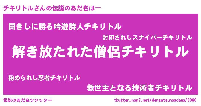 | 意味不明あだ名 | 『とにかく怪しいチキリトル』 |