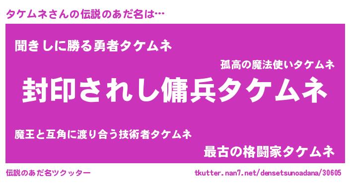 | ファンタジー風あだ名 | 『タケフェル』『タケディッシュ』 |
