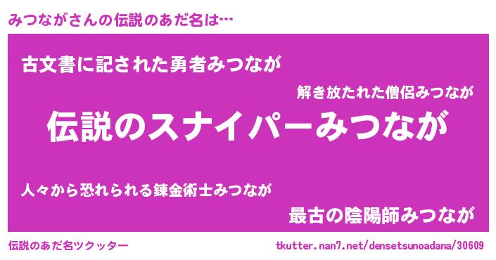 | 胡散臭い通販商品みたいなあだ名 | 『必ず成功する霊験あらたかなお札…その名も「みつなが」』 |