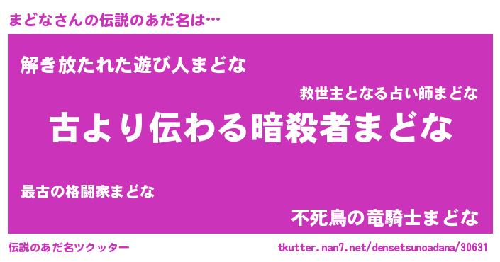 | 胡散臭い通販商品みたいなあだ名 | 『来世でも幸せになれる健康食品…その名も「まどな」』 |