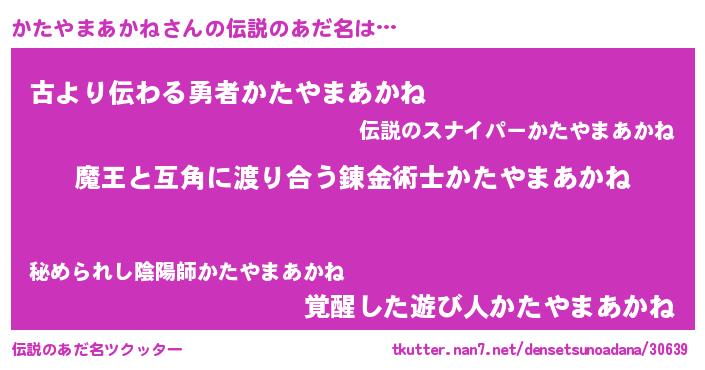 | ヘコむあだ名 | 『かたやまあかね(苦笑)』『かた太郎』 |