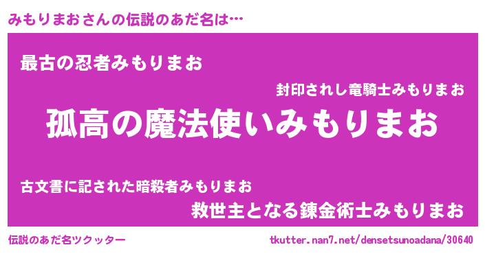 | 男性向けラノベタイトル風あだ名 | 『ダンジョンにみもりまおを求めるのは間違っているだろうか』 |