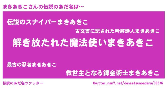 | 意味不明あだ名 | 『とにかく怪しいまきあきこ』 |