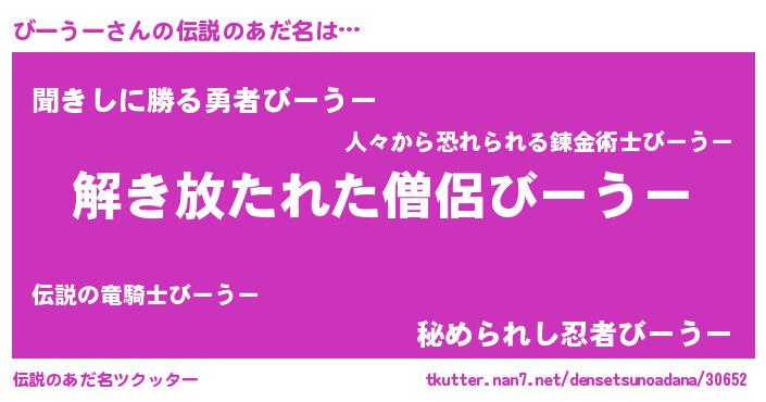 | ヘコむあだ名 | 『びーっぺ』『びーうー(遠い目)』 |