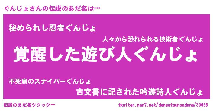 | 男性向けラノベタイトル風あだ名 | 『この素晴らしい世界にぐんじょを!』 |