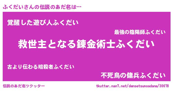 | 男性向けラノベタイトル風あだ名 | 『ふくだい~年齢イコール彼女いない歴の魔法使い~』 |