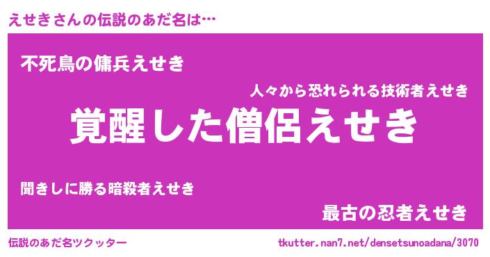 | 意味不明あだ名 | 『自称えせき』『とにかく怪しいえせき』 |