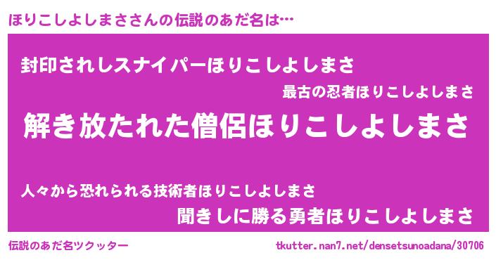 | 意味不明あだ名 | 『とにかく怪しいほりこしよしまさ』 |