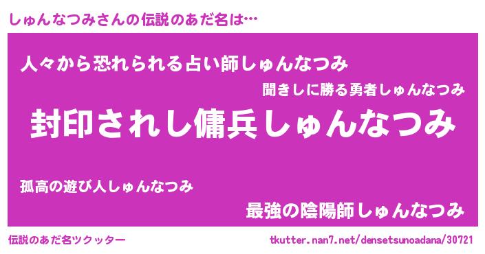 | 胡散臭い通販商品みたいなあだ名 | 『億万長者になれる水晶球…その名も「しゅんなつみ」』 |