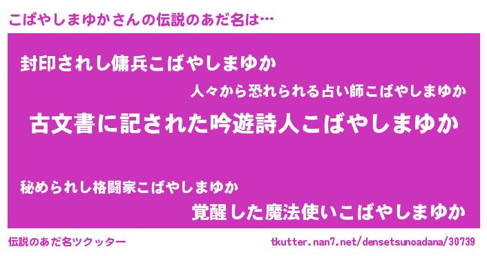 | 意味不明あだ名 | 『住所不定無職こばやしまゆか(1歳)』 |
