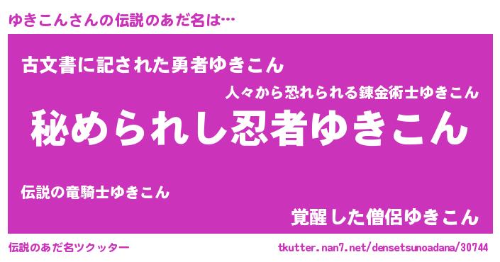 | ファンタジー風あだ名 | 『エターナルユキコンー』『ゼユキトゥ』 |