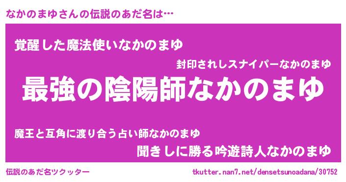 | ファンタジー風あだ名 | 『エターナルナカノマユー』『ゼナカトゥ』 |